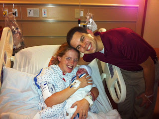 Last night at 11:32pm, my wife heroically delivered little Augustine Xavier Vogt. Both were champs. Kathleen gave birth to the 9 lb, 20.5 inch saint without medicine, and Augustine survived a scary moment when he emerged with the umbilical cord wrapped twice around his neck.